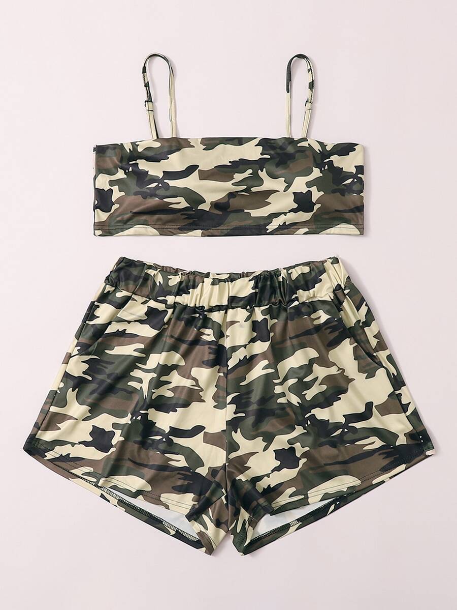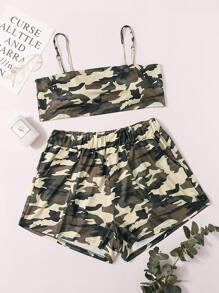 Plus Camo Print Lingerie Set