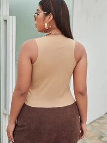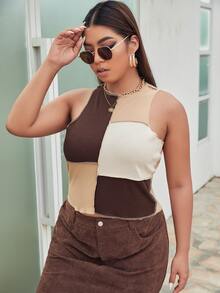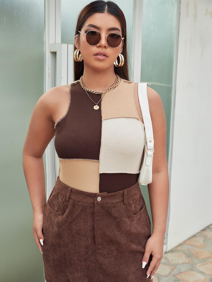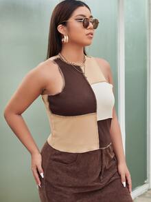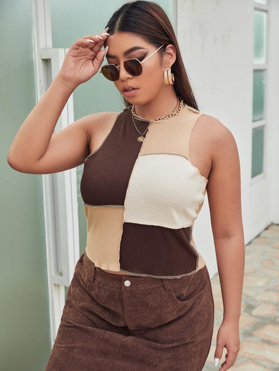 Plus Color Block Top-stitching Crop Tank Top