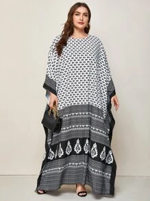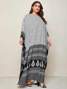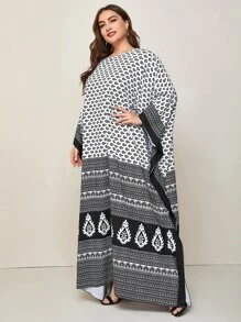 Plus Colorblock Side Split Maxi Kaftan Dress