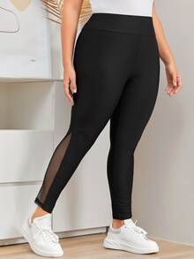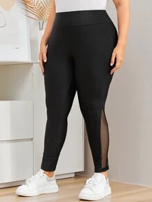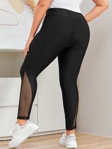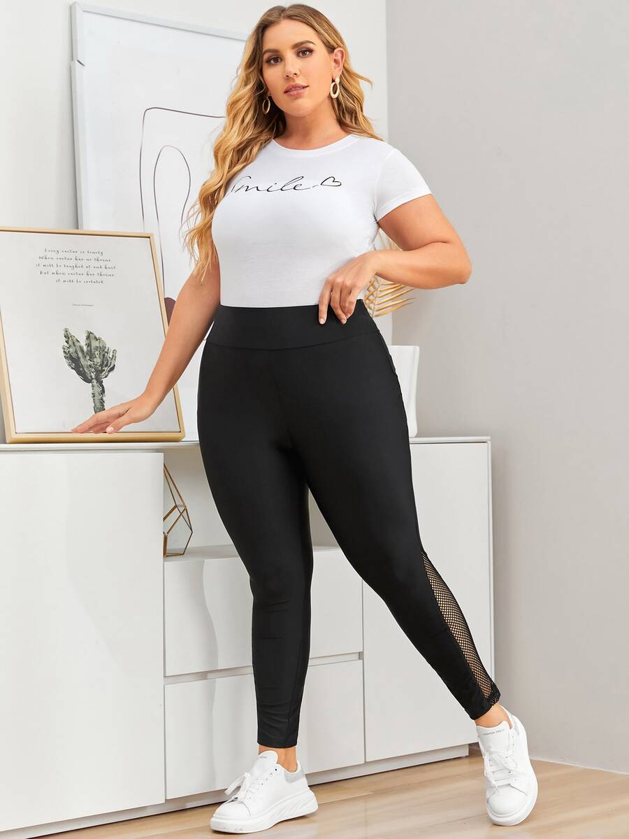 Plus Contrast Fishnet High Waist Leggings