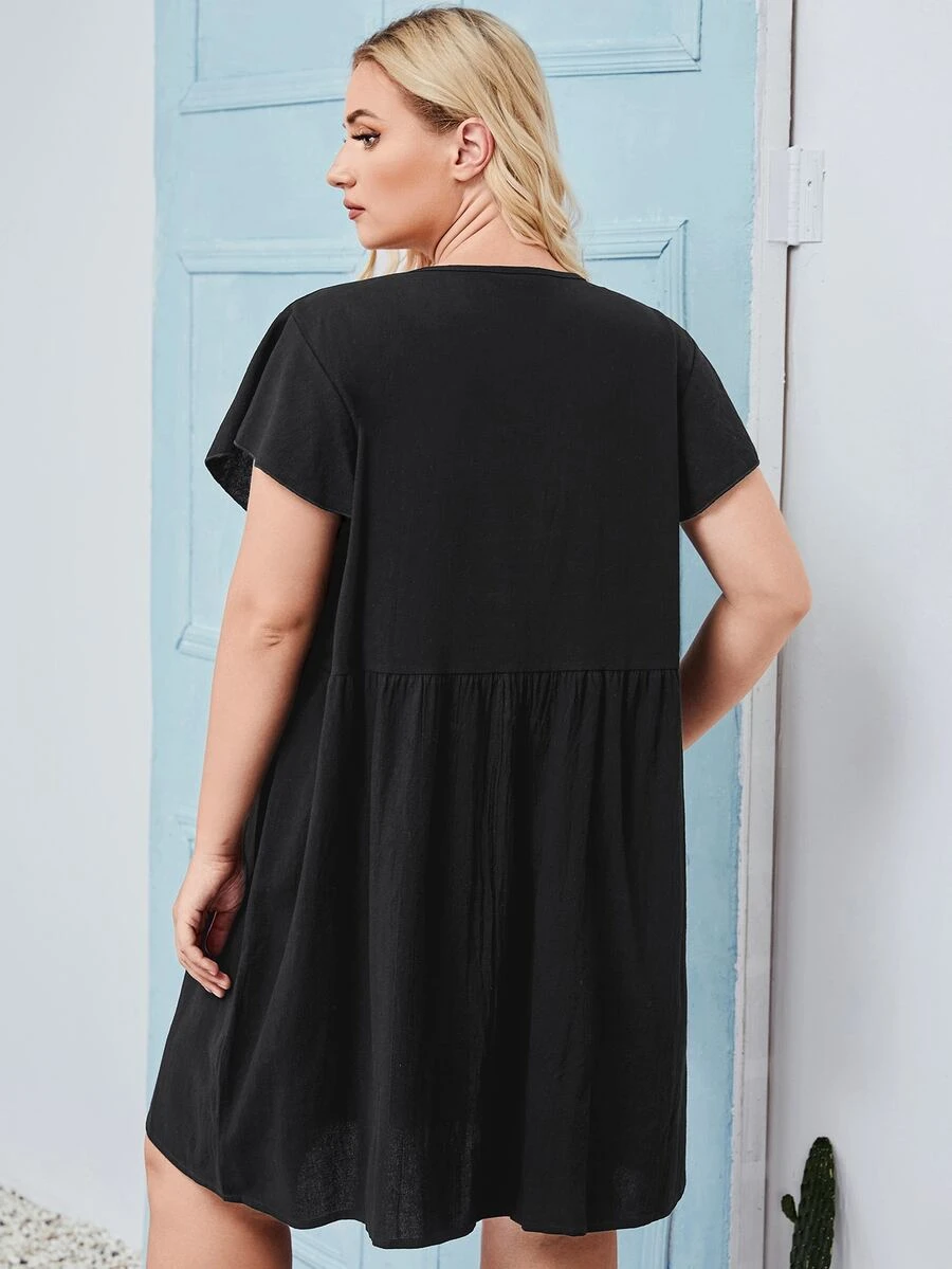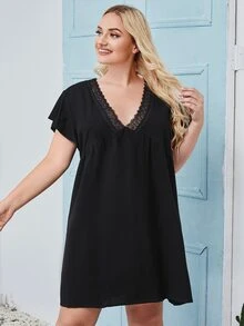 Plus Contrast Lace Babydoll Dress