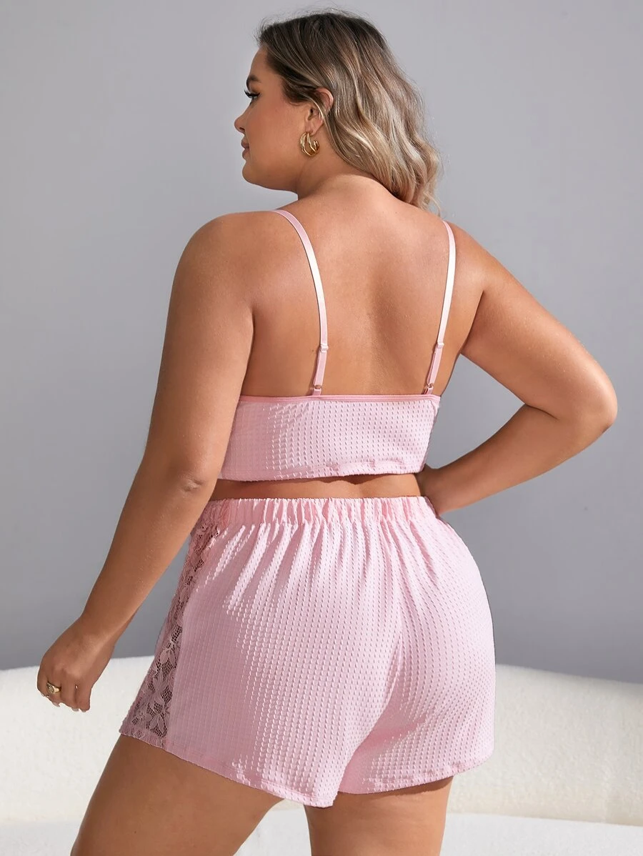 Plus Contrast Lace Cami Top & Shorts PJ Set