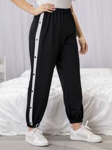 Plus Contrast Panel Button Side Sweatpants