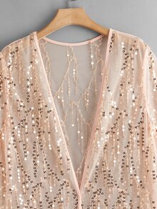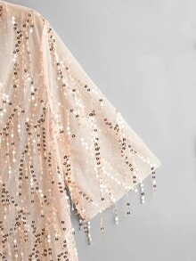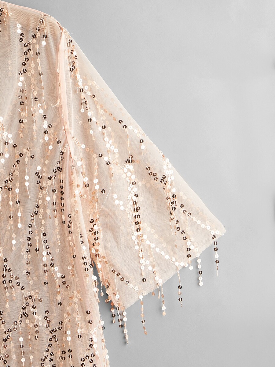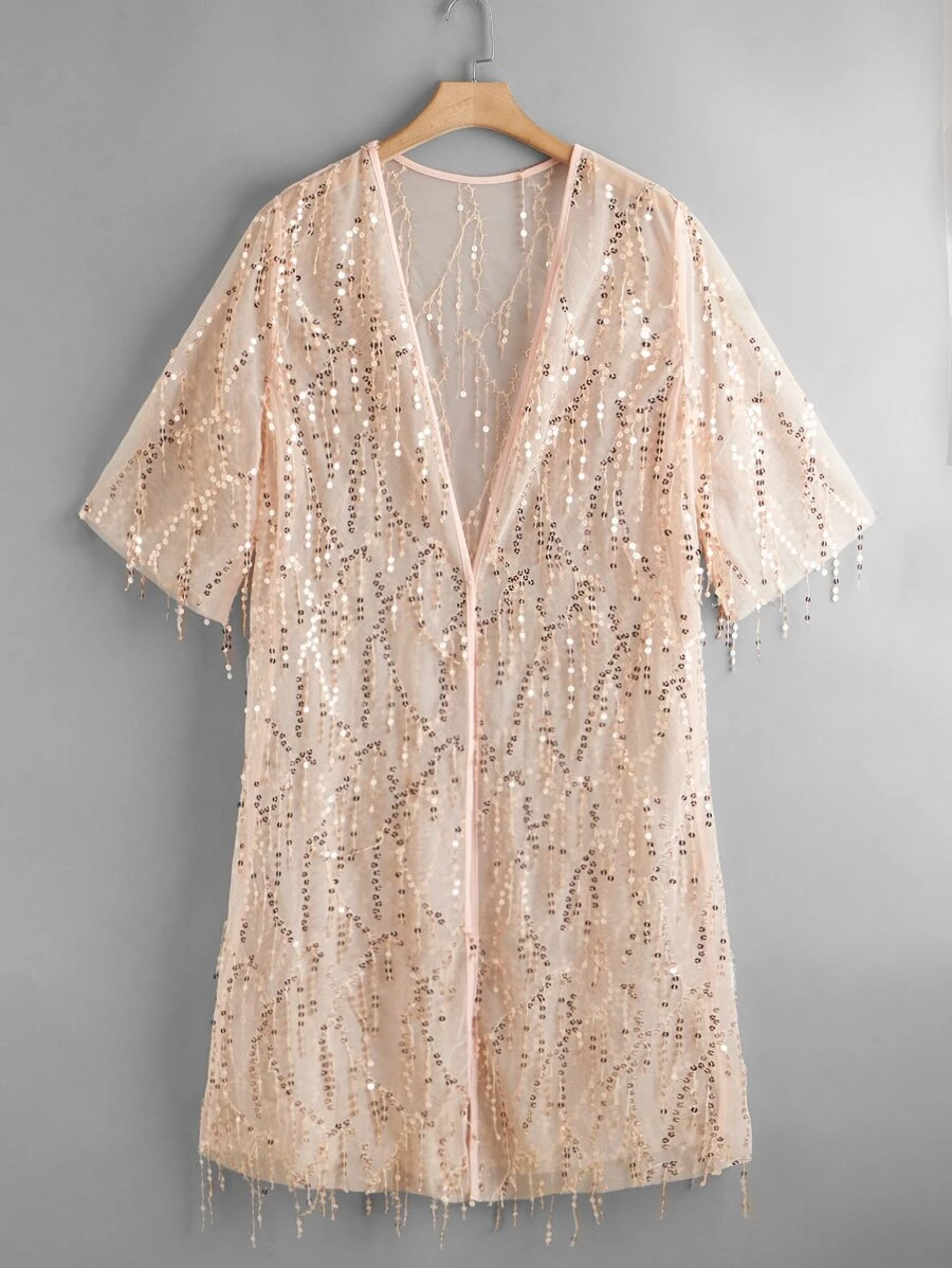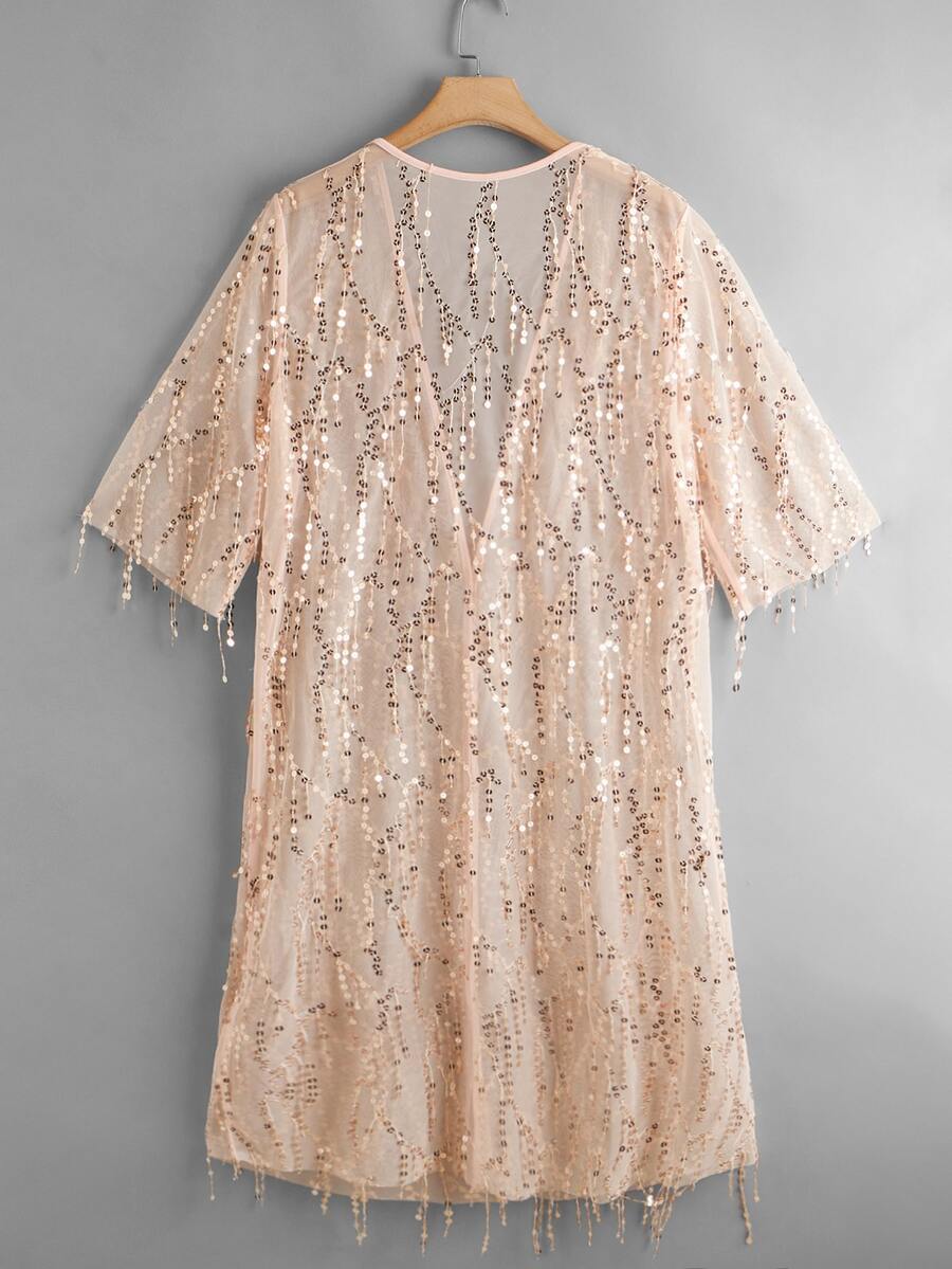 Plus Contrast Sequin Sheer Mesh Kimono