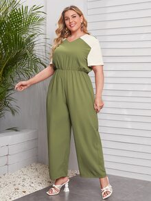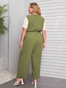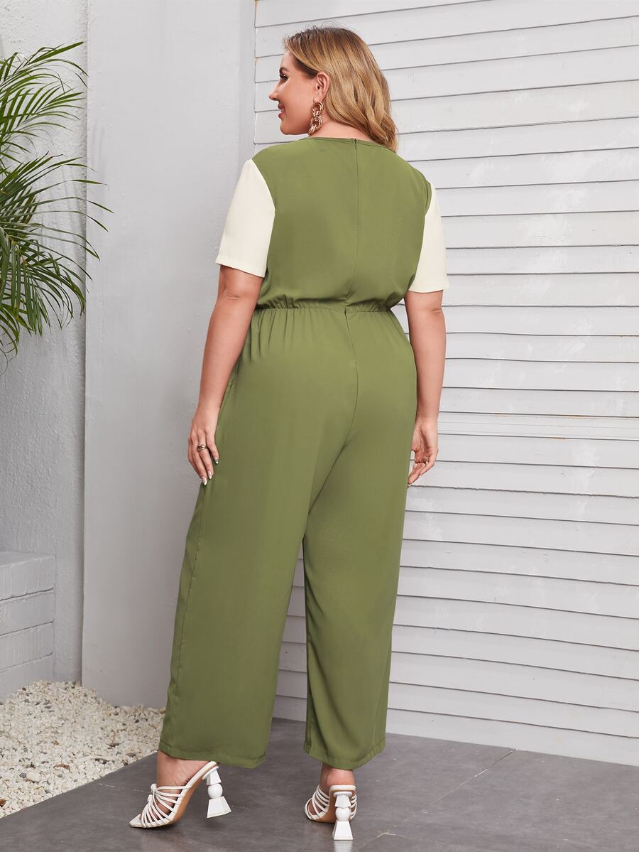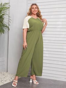Plus Contrast Sleeve Wide Leg Jumpsuit