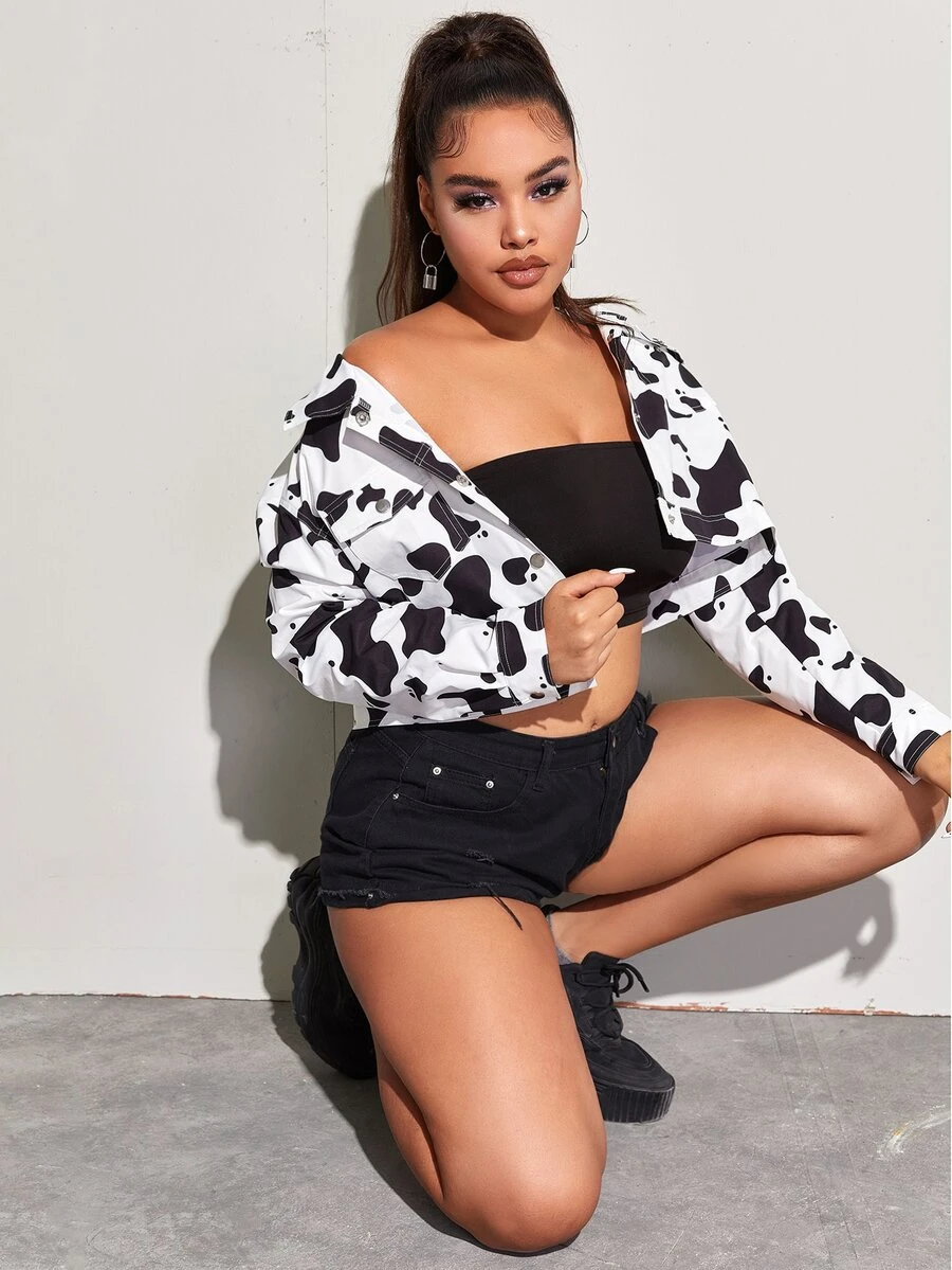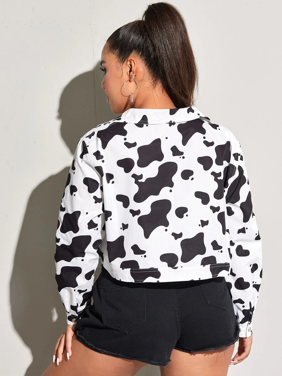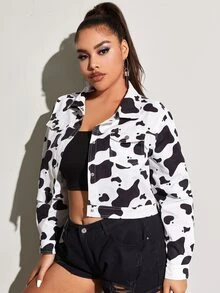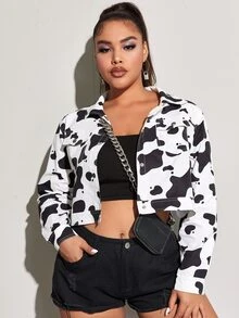 Plus Cow Print Crop Jacket