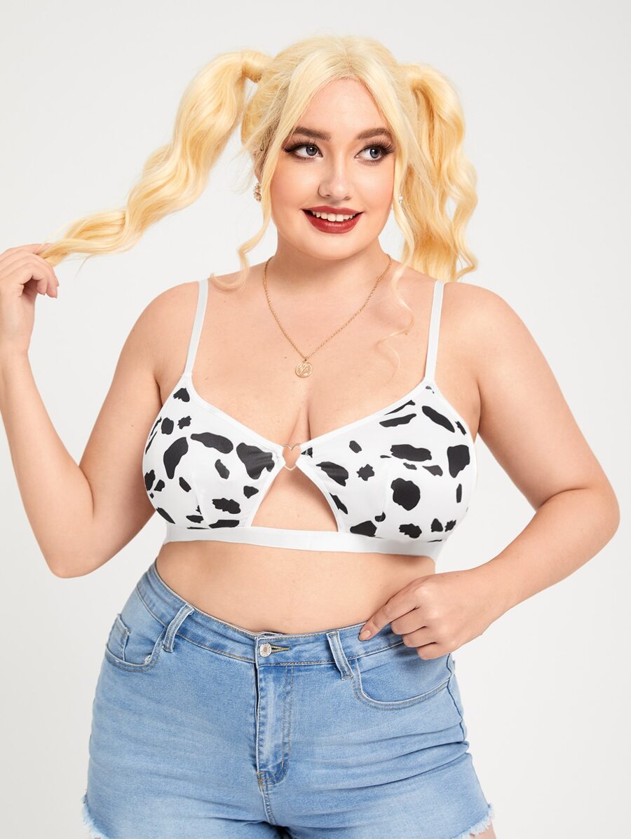 Plus Cow Print Cut-out Bra