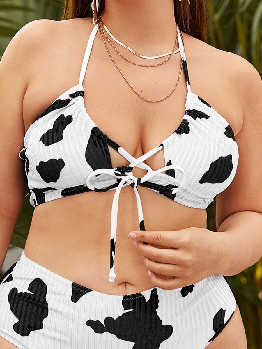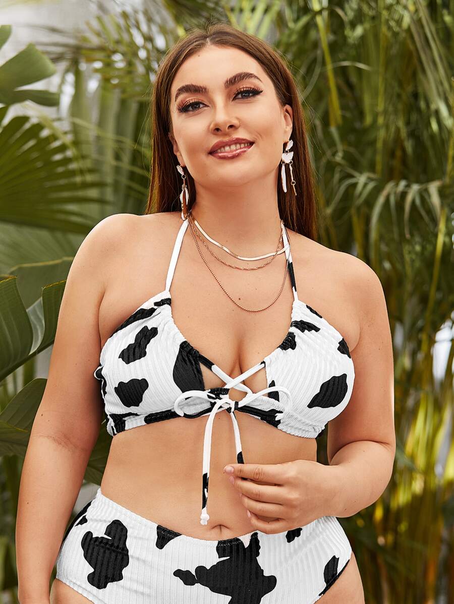 Plus Cow Print Halter Bikini Top