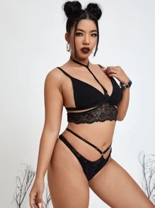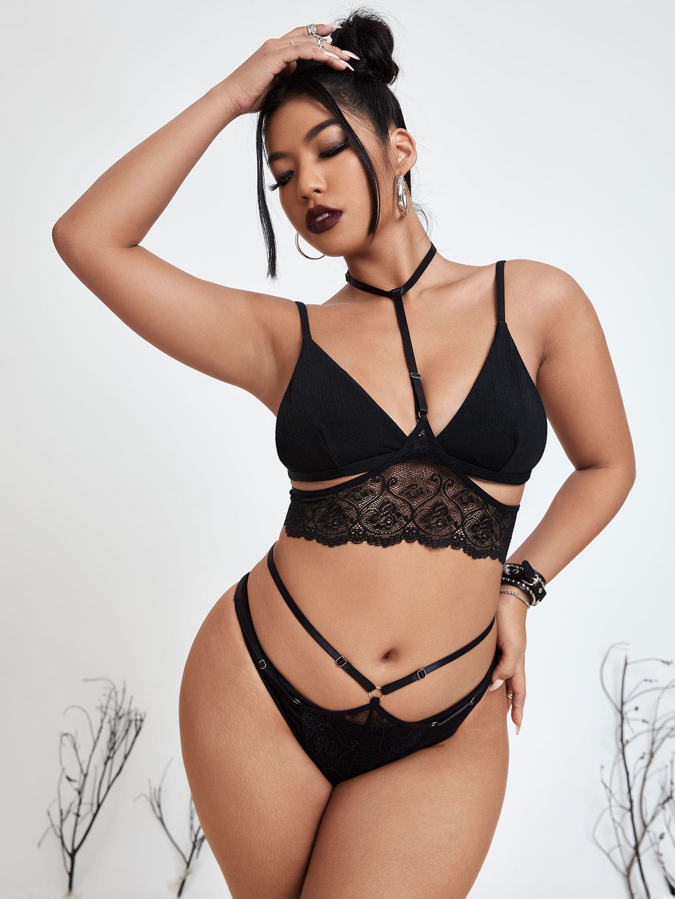 Plus Cut Out Choker Lingerie Set Without Bra & Panty