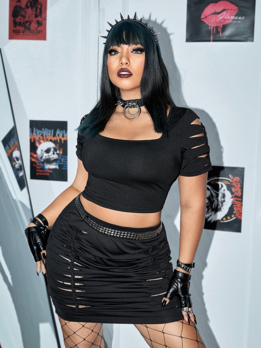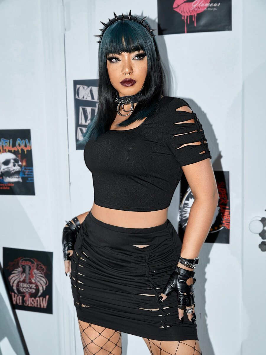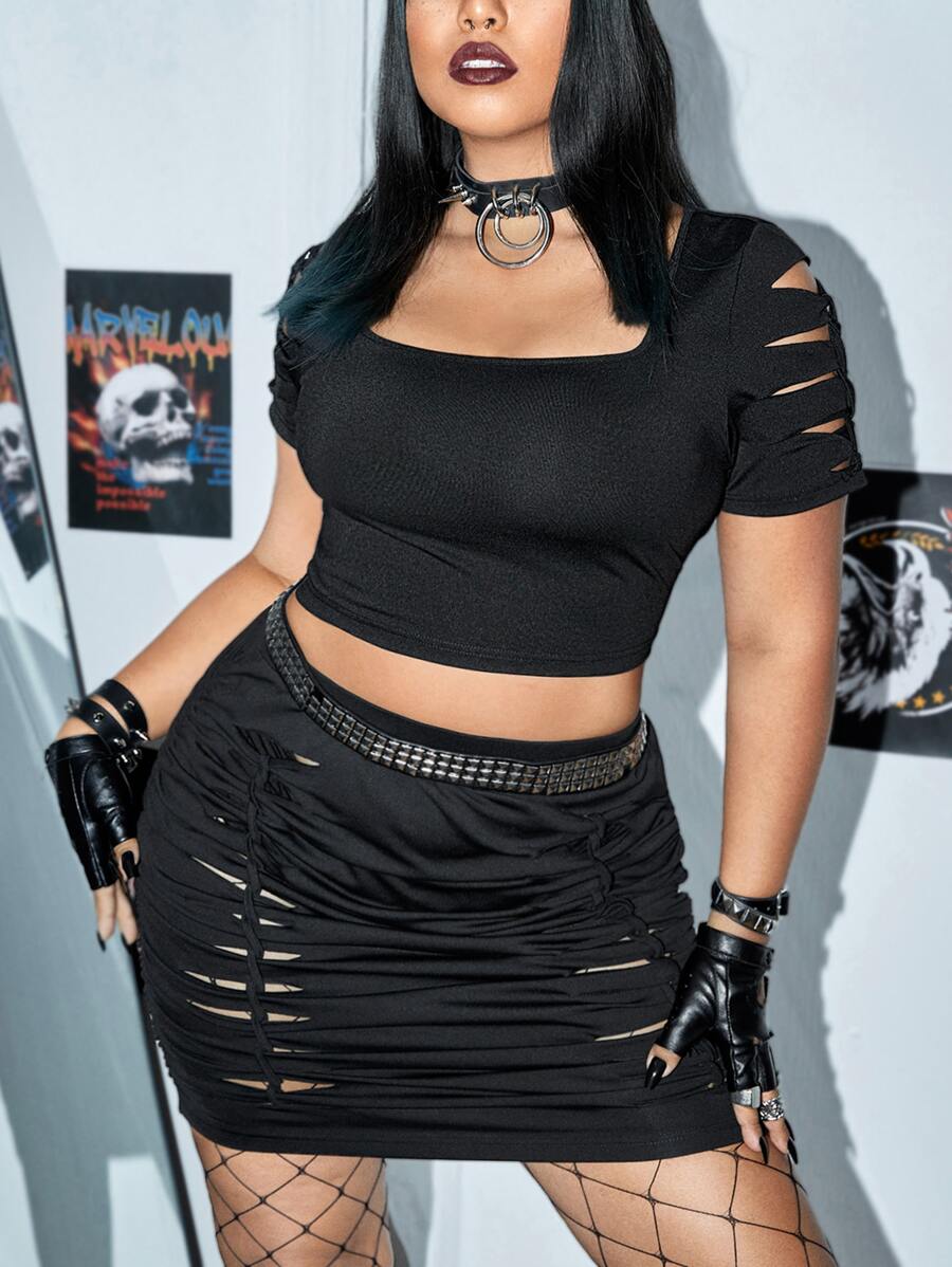 Plus Cut Out Crop Tee & Bodycon Skirt Without Belt