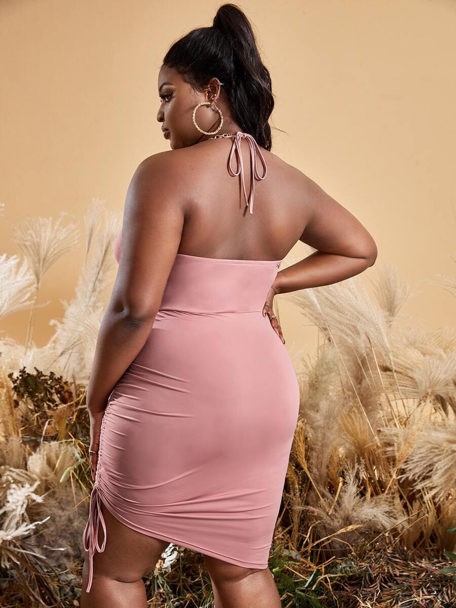 Plus Cut Out Drawstring Side Halter Neck Bodycon Dress