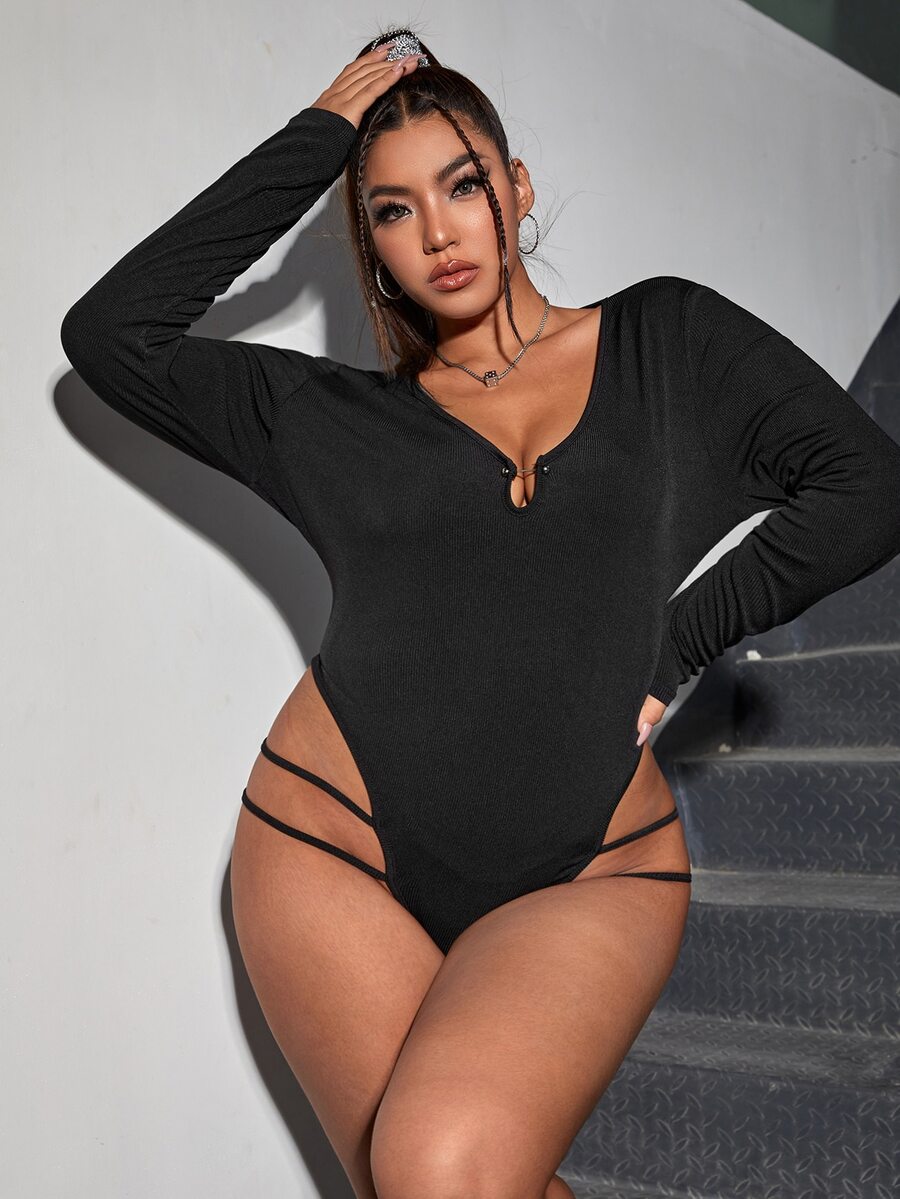 Plus Cut Out Strappy Bodysuit