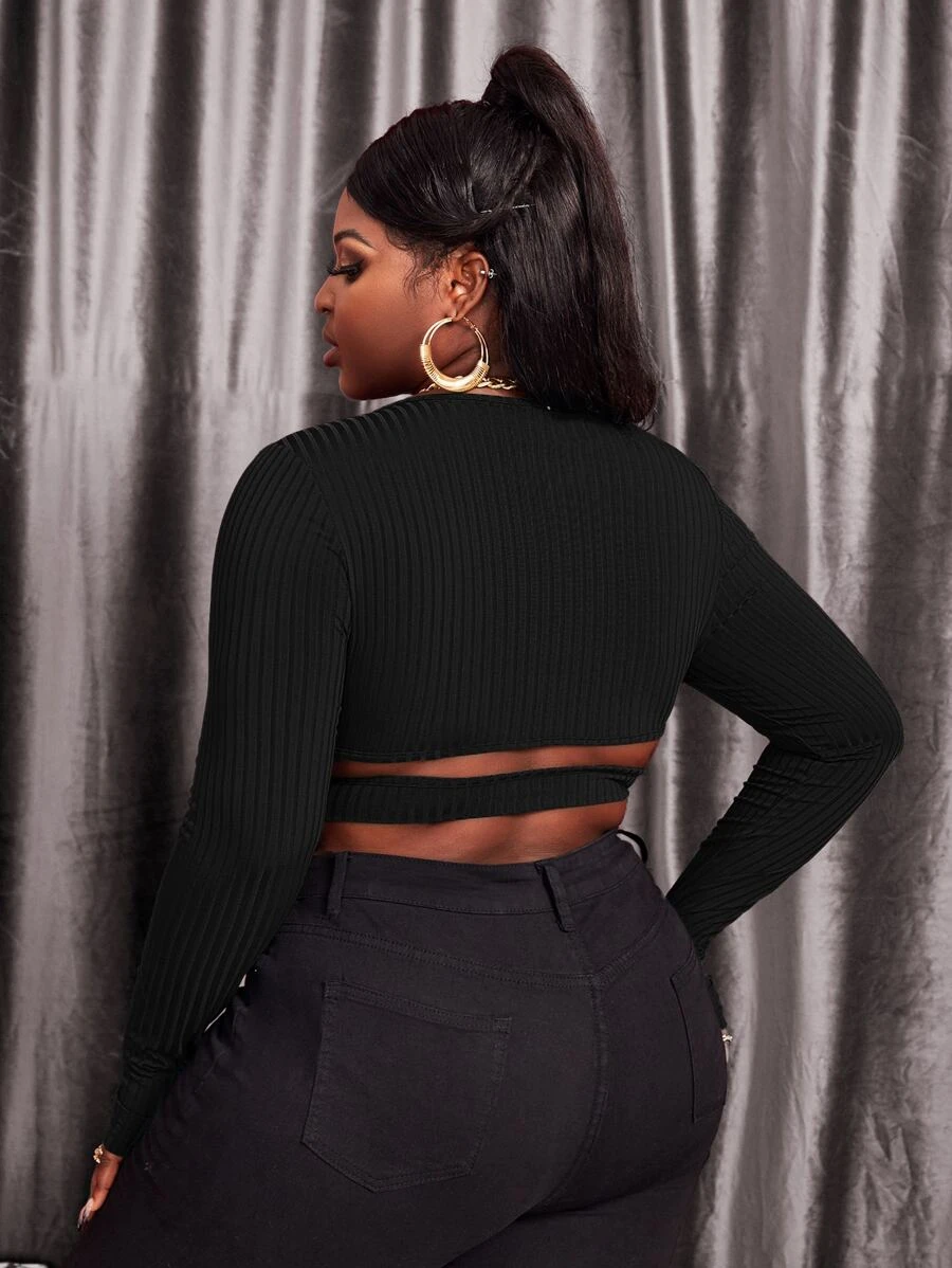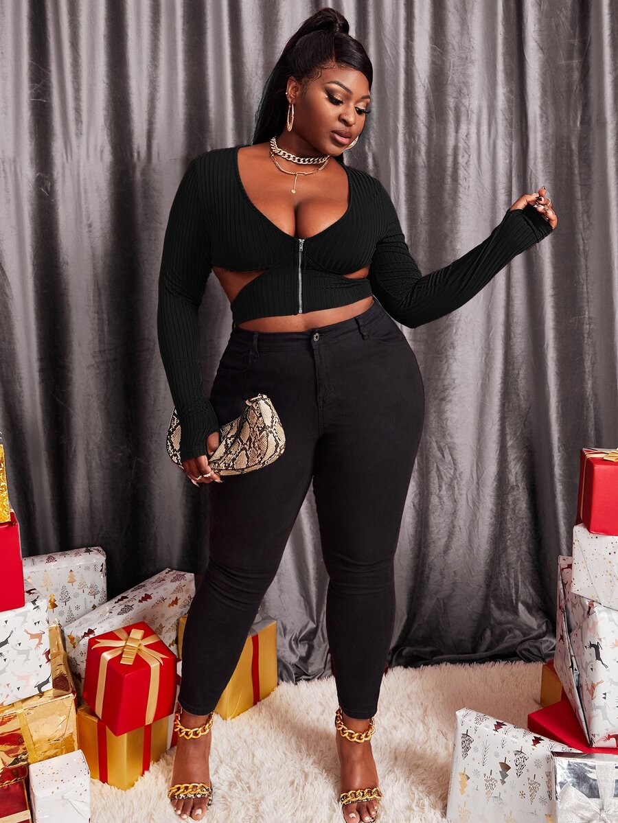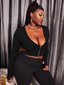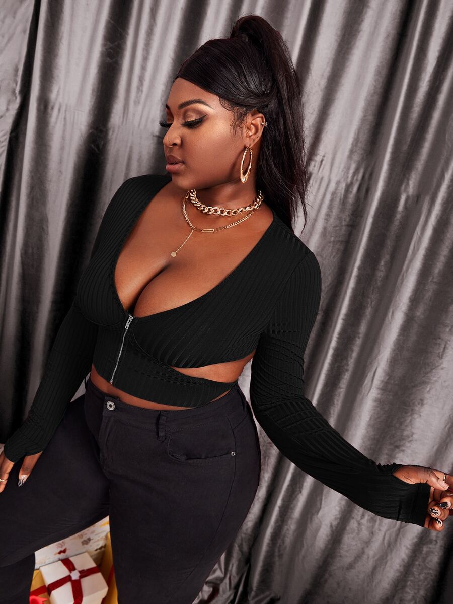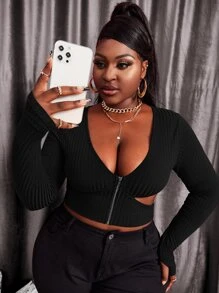 Plus Cut Out Zipper Thumb Hole Crop Top