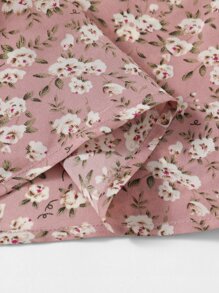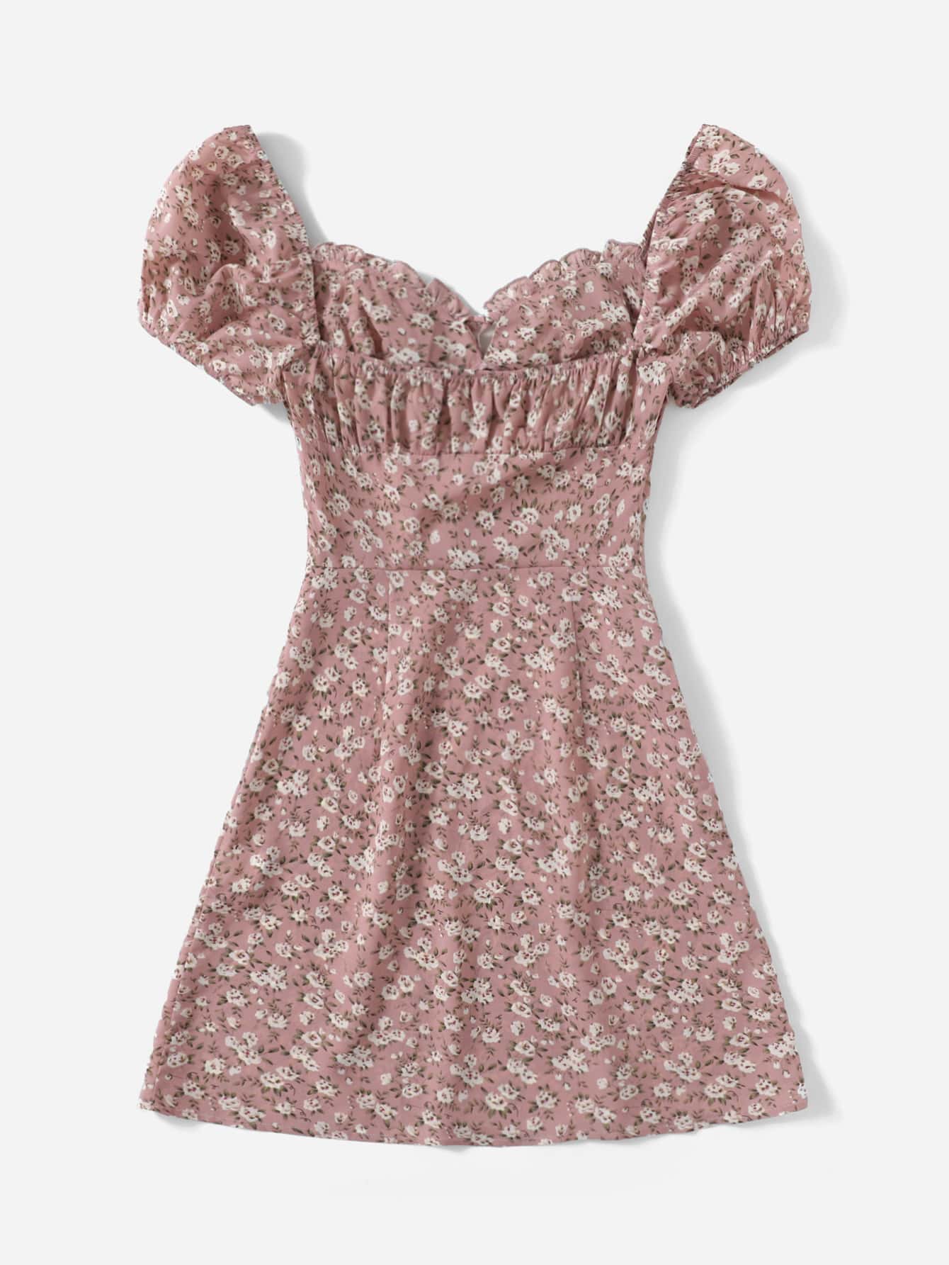 Plus Ditsy Floral Sweetheart Neck Puff Sleeve Knot Front Dress