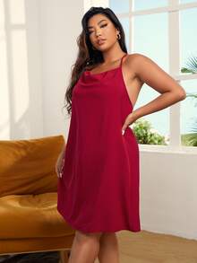 Plus Draped Collar Crisscross Back Slip Nightdress