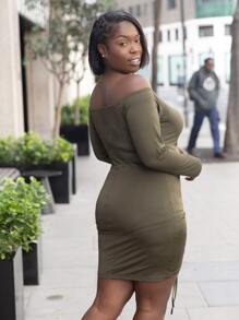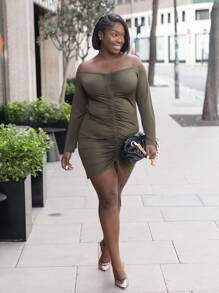 Plus Drawstring Ruched Front Bardot Bodycon Dress
