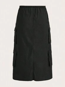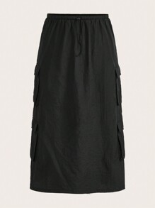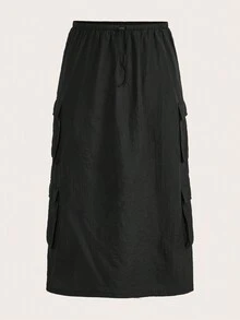 Plus Drawstring Waist Flap Pocket Side Cargo Skirt