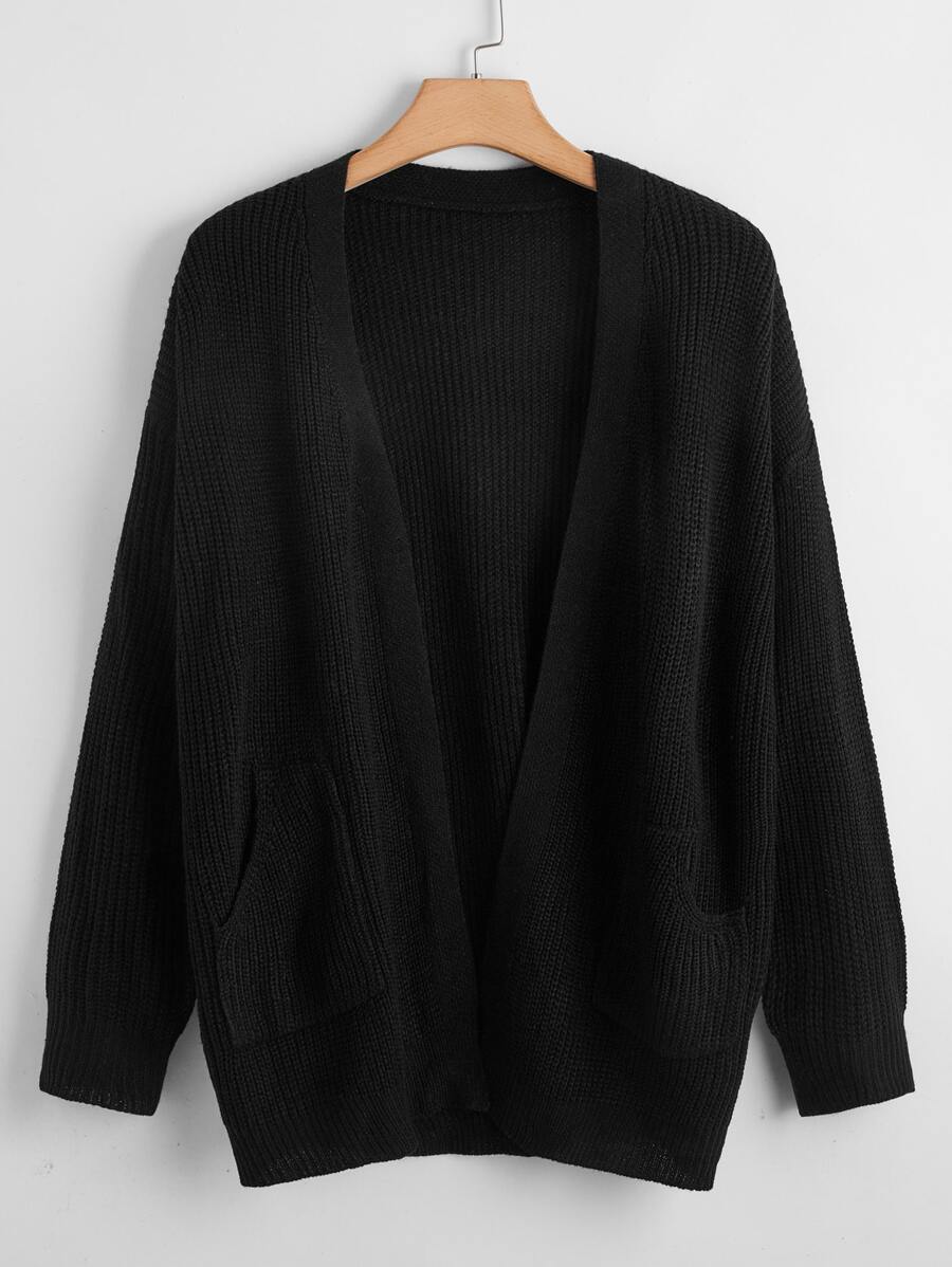 Plus Drop Shoulder Pocket Front Cardigan