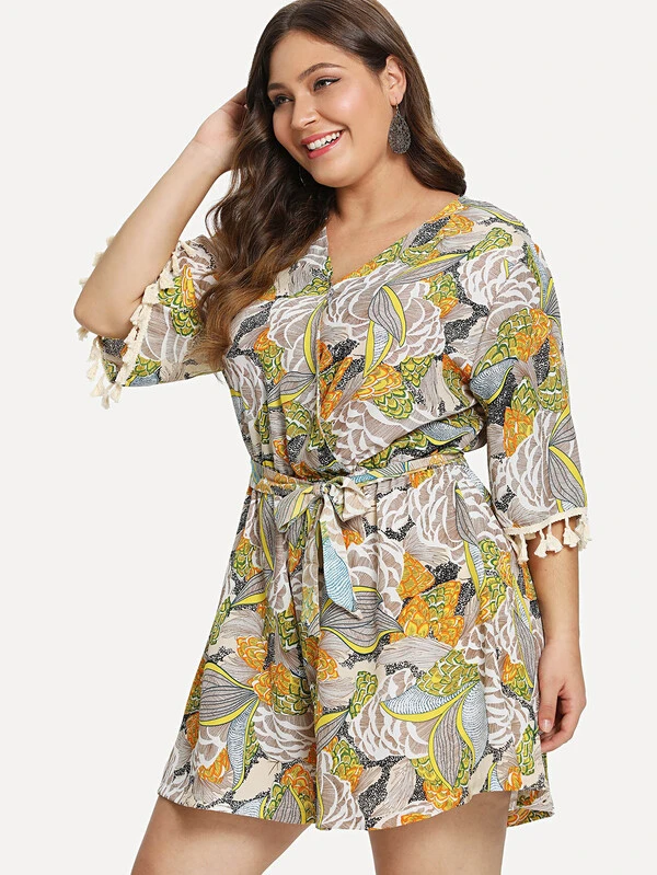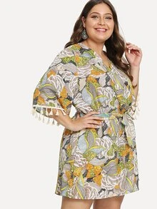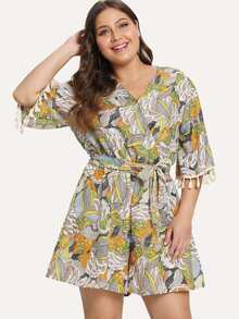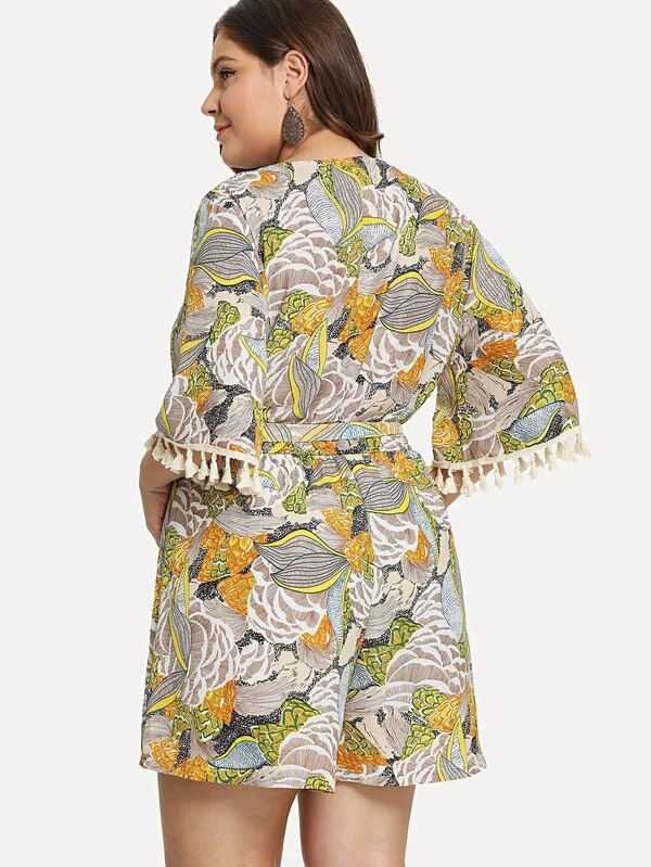 Plus Figure Print Fringe Hem Romper