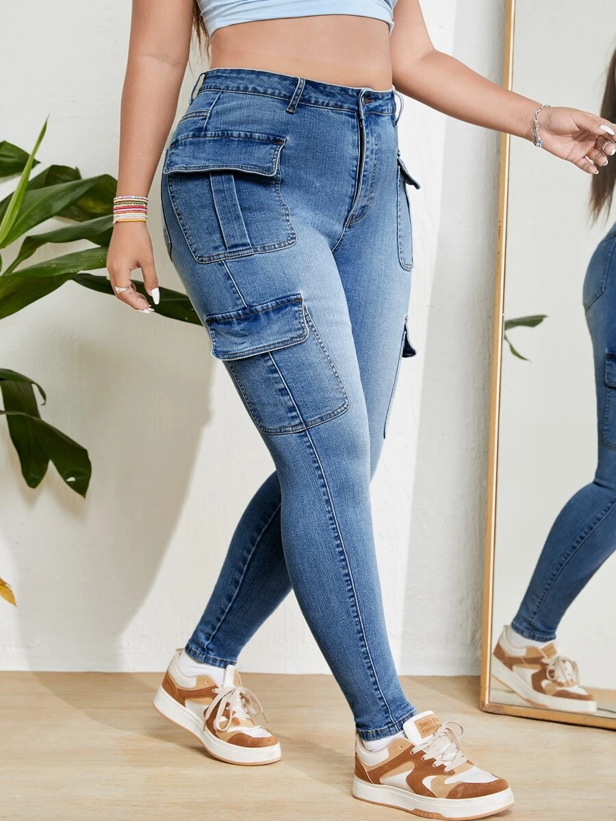 Plus Flap Pocket Side Cargo Jeans