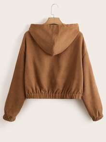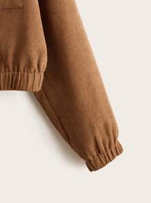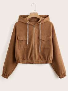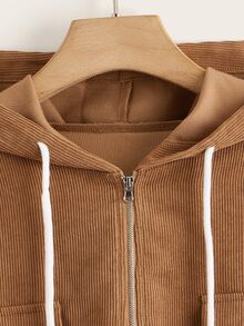 Plus Flap Pocket Zip Up Drawstring Hooded Corduroy Jacket