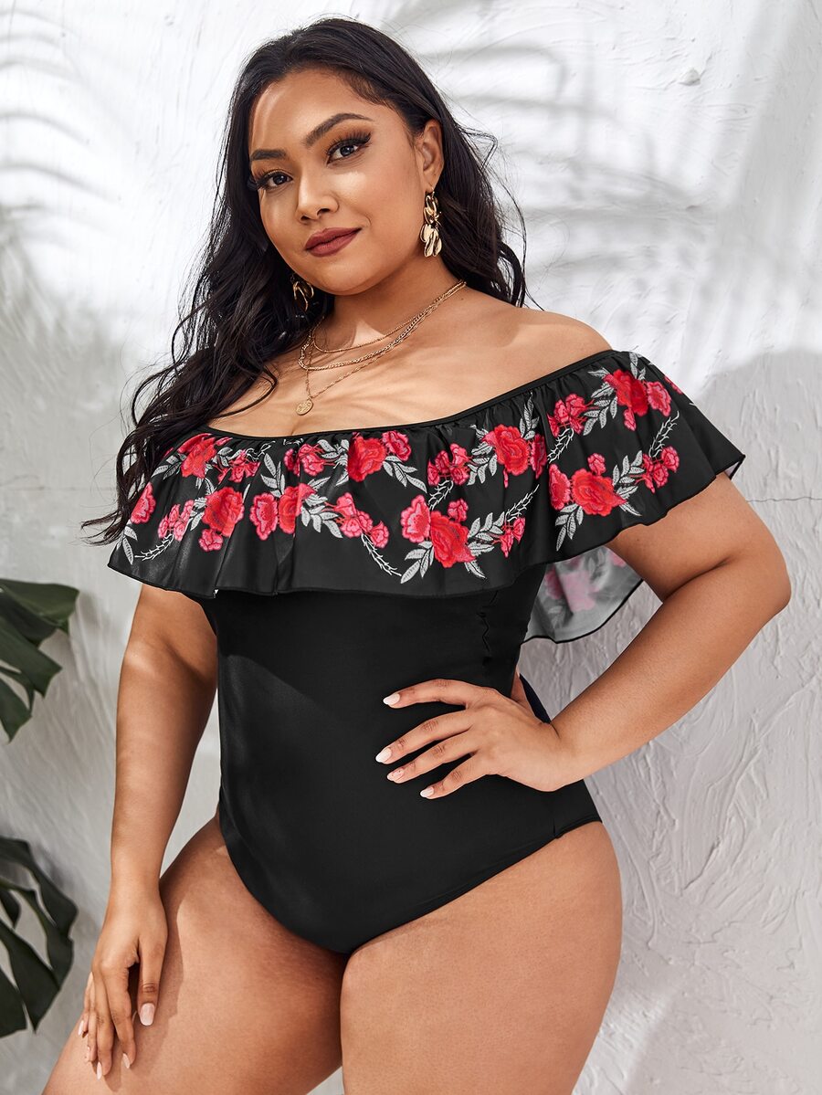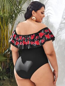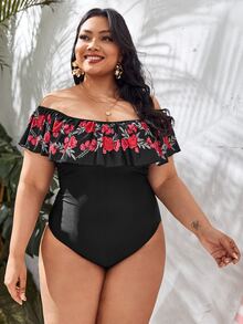 Plus Floral Graphic Flounce One Piece Swimsuit