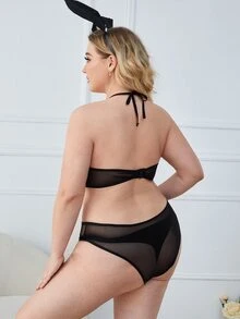 Plus Floral Lace Cut-out Animal Costume Bodysuit & Hair Hoop