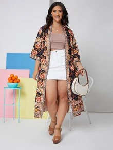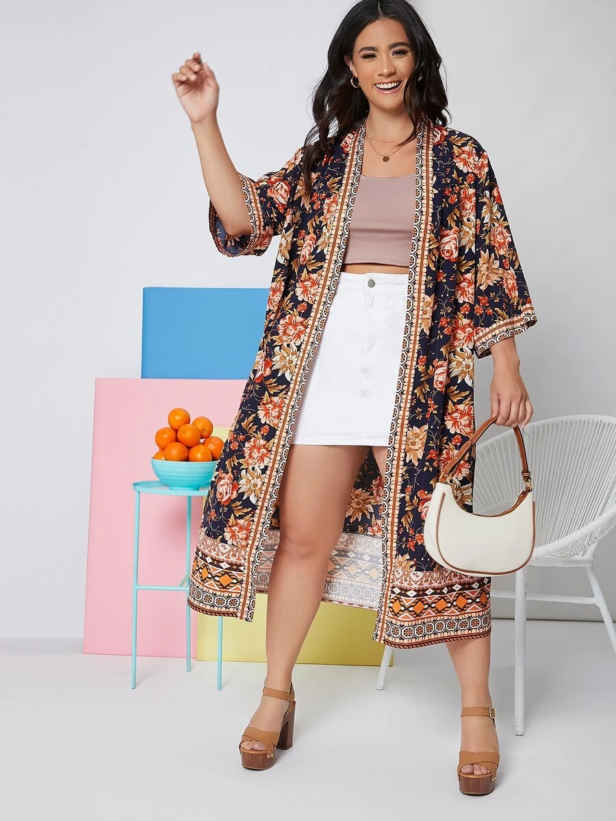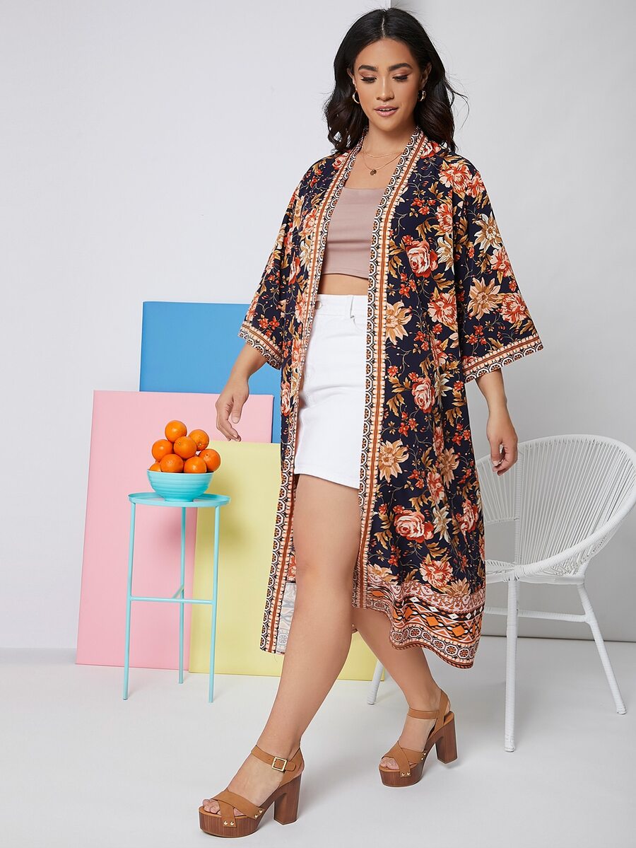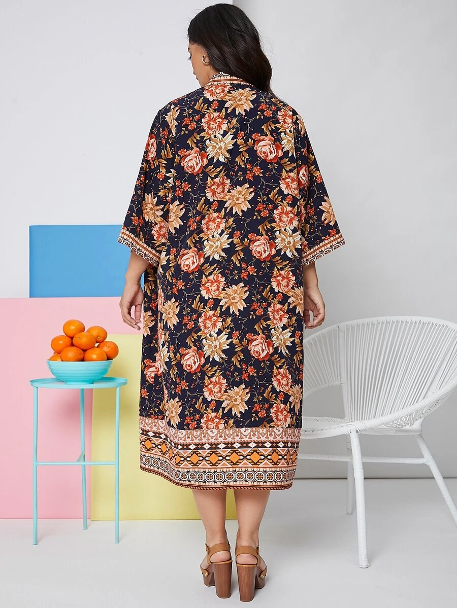 Plus Floral Open Front Kimono