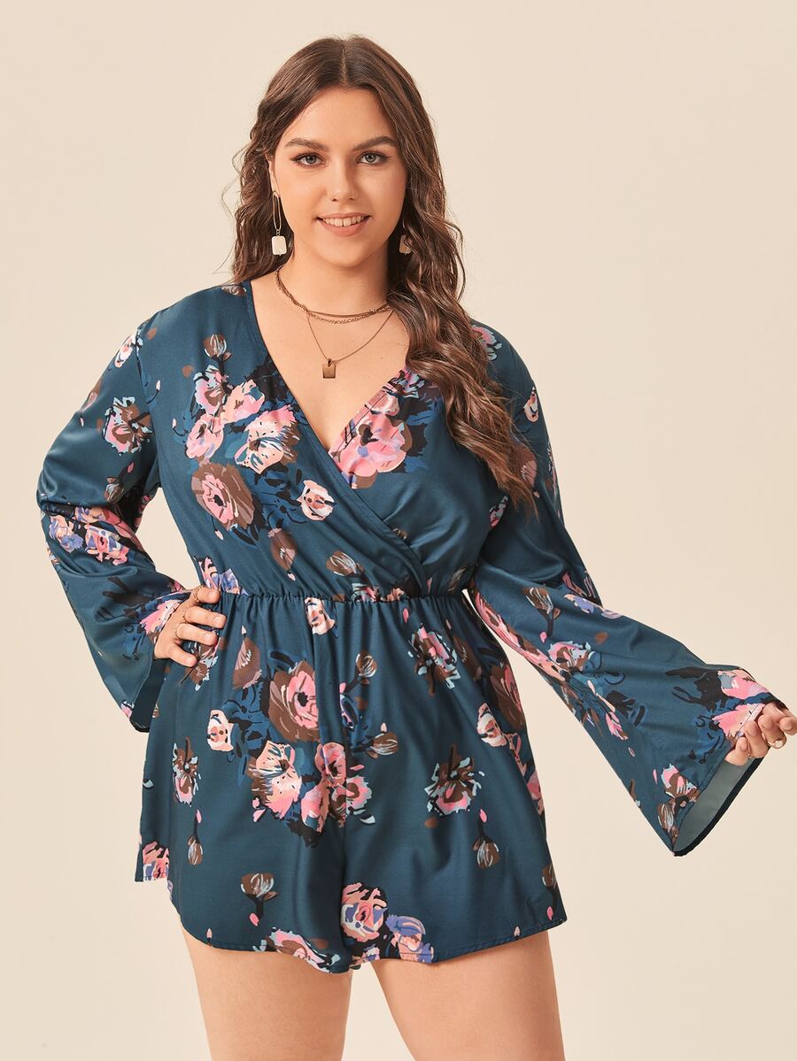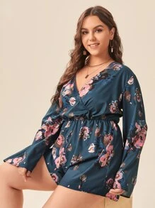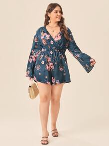 Plus Floral Print Wrap Romper