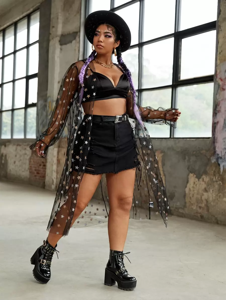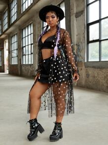 Plus Glitter Star Sheer Mesh Kimono