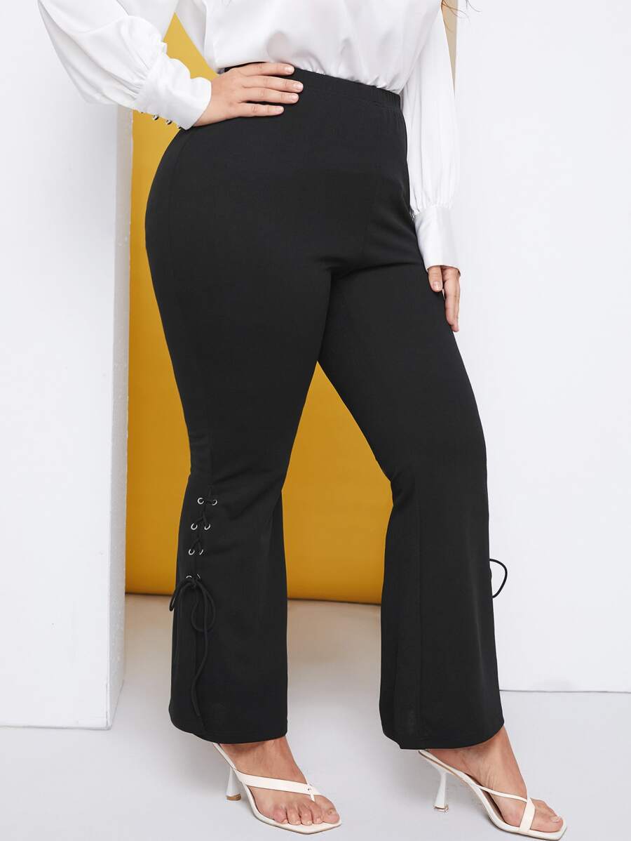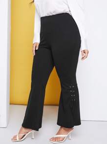 Plus Grommet Lace Up Side Flare Leg Pants