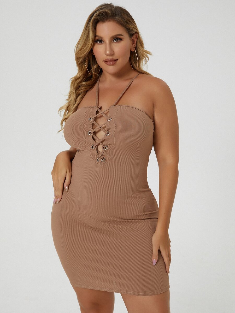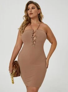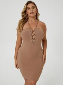 Plus Grommet Lace-up Bodycon Dress