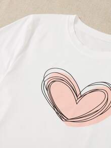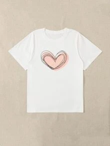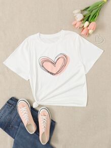 Plus Heart Print Round Neck Tee
