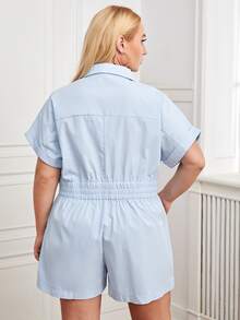 Plus Hidden Button Roll Sleeve Ruched Romper