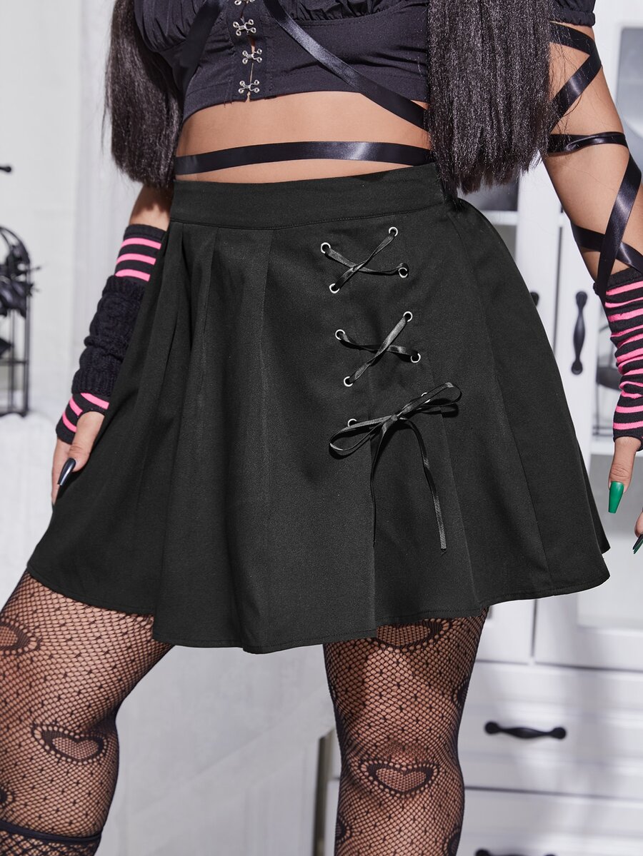 Plus High Waist Grommet Lace Up Pleated Skirt