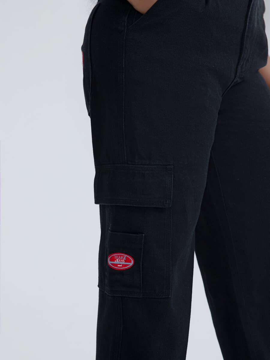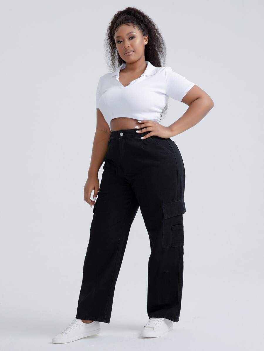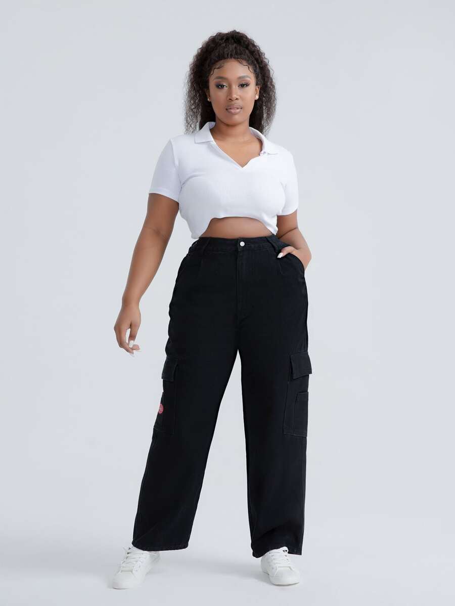 Plus High Waist Patched Detail Flap Pocket Jeans