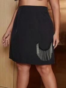 Plus High Waist Rhinestone Fringe Trim Skirt