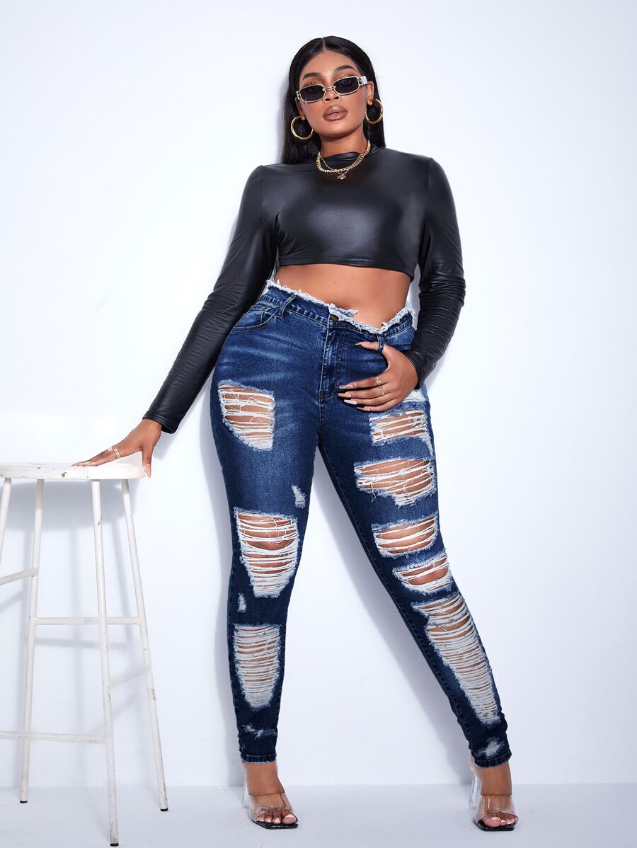 Plus High Waist Ripped Frayed Skinny Jeans