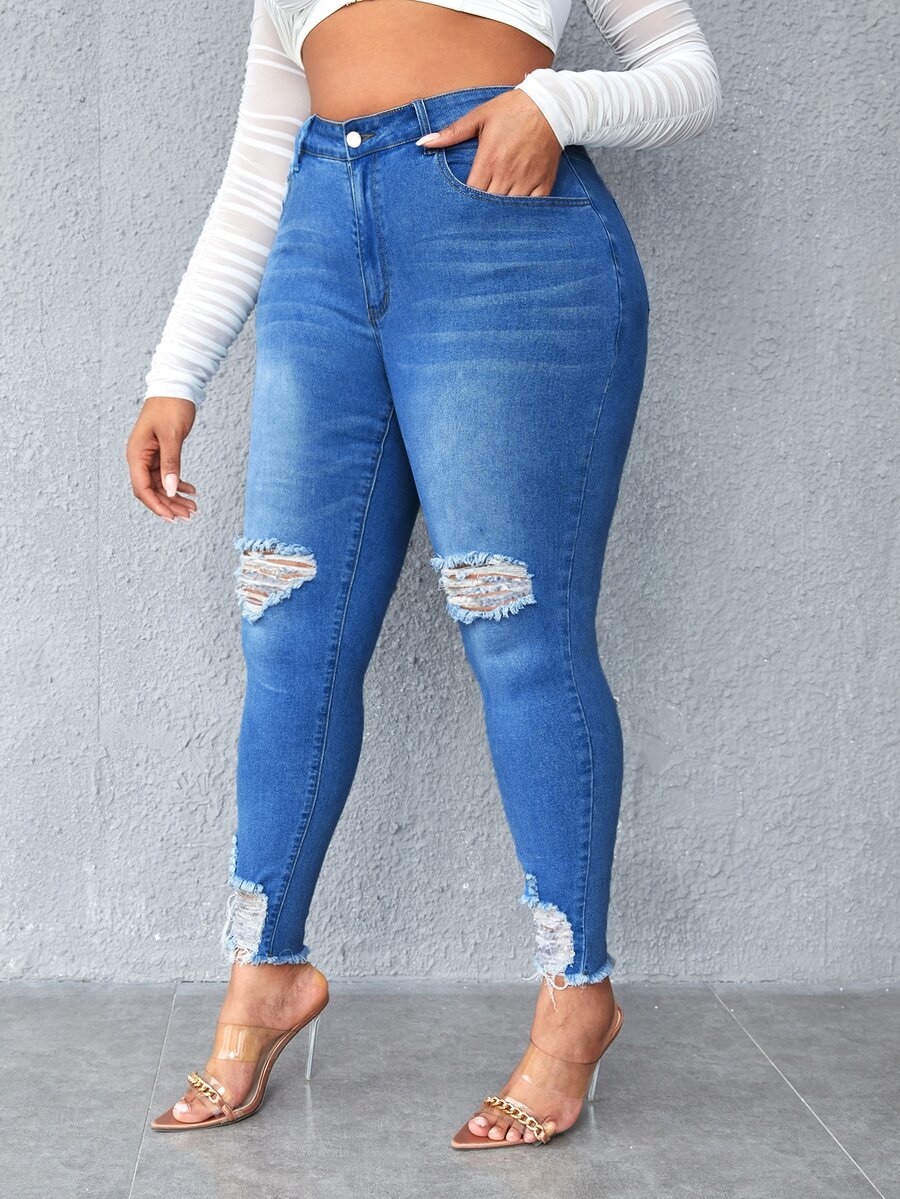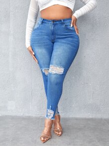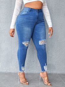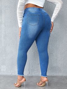 Plus High Waist Ripped Raw Trim Skinny Jeans Without Chain