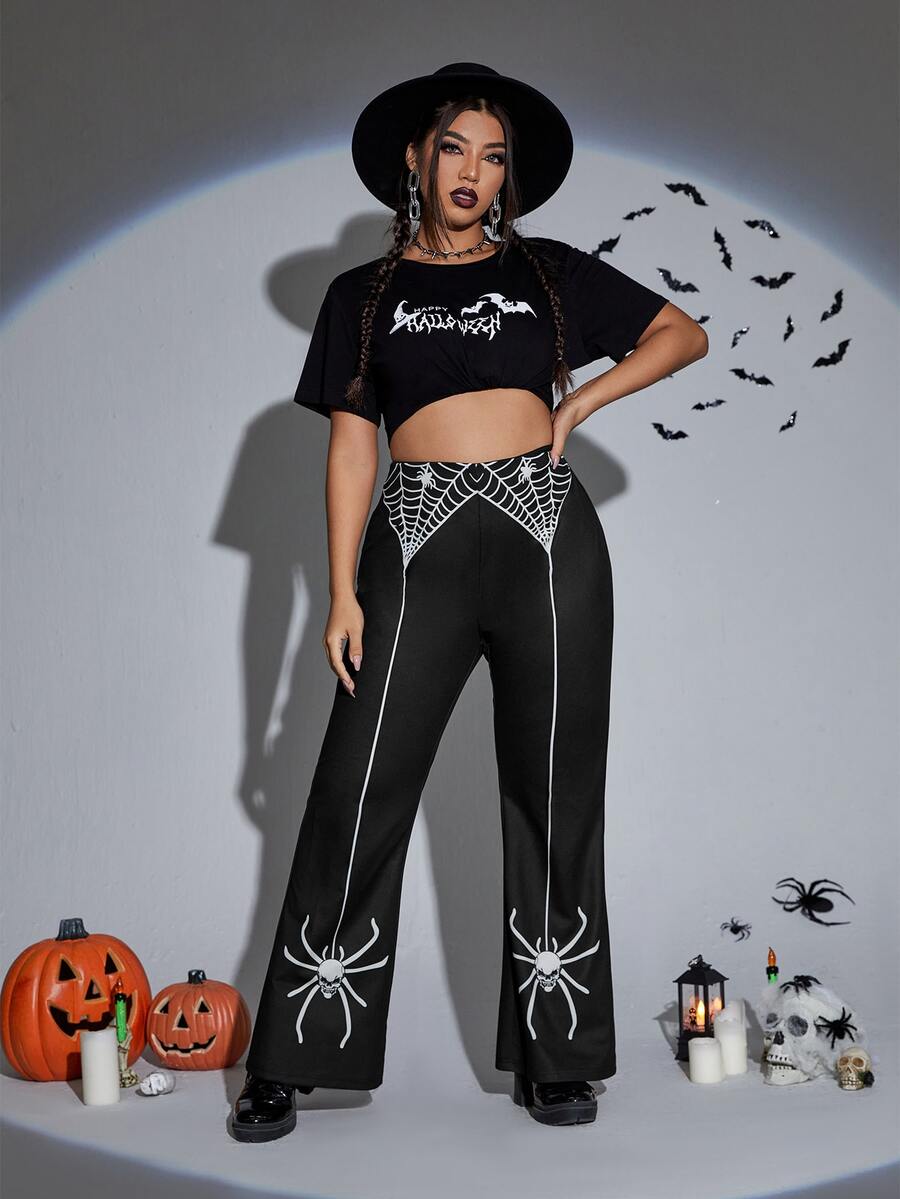 Plus High Waist Spider Web Print Wide Leg Pants