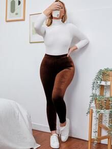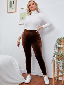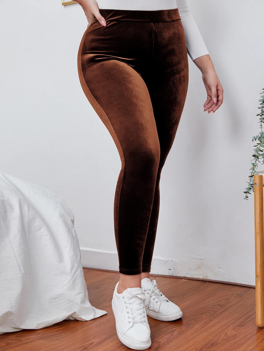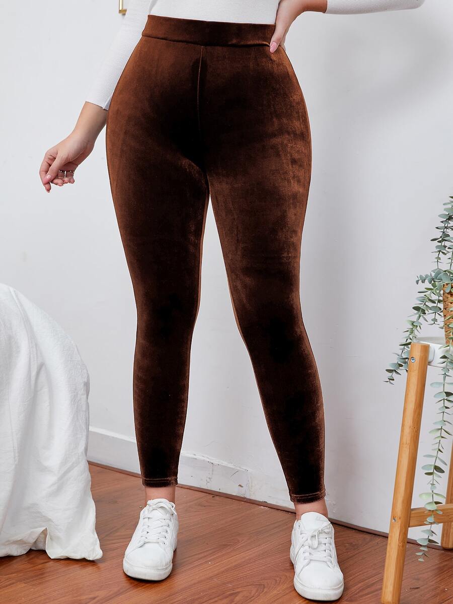 Plus High Waist Velvet Leggings
