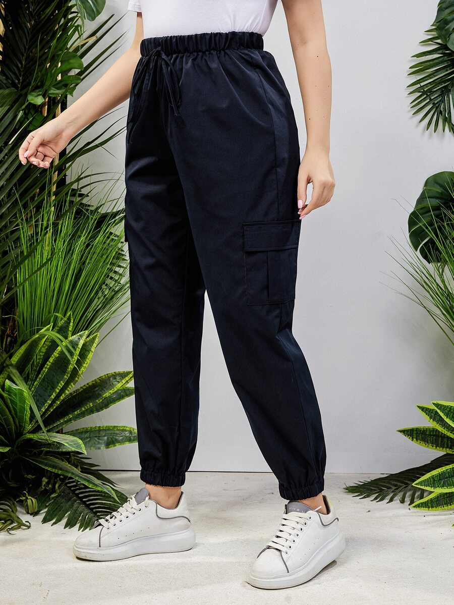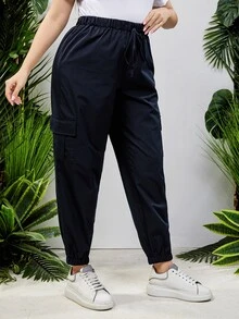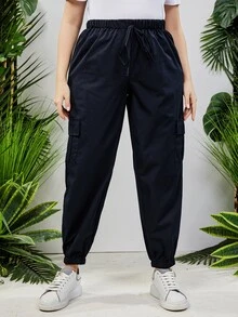 Plus Knot Front Flap Pocket Side Cargo Pants