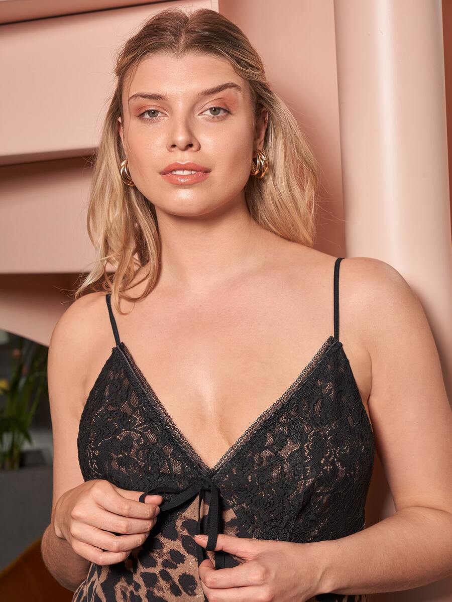 Plus Lace Detail Tie Front Leopard Slip Sleepdress