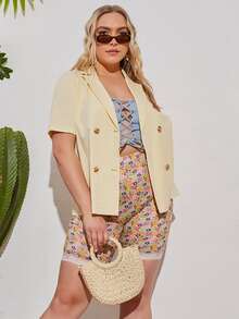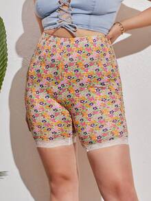 Plus Lace Hem Ditsy Floral Biker Shorts