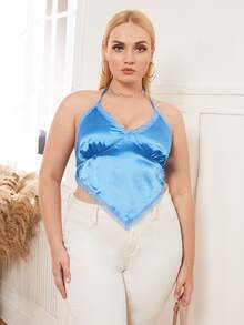 Plus Lace Trim Backless Knot Bandana Satin Halter Top