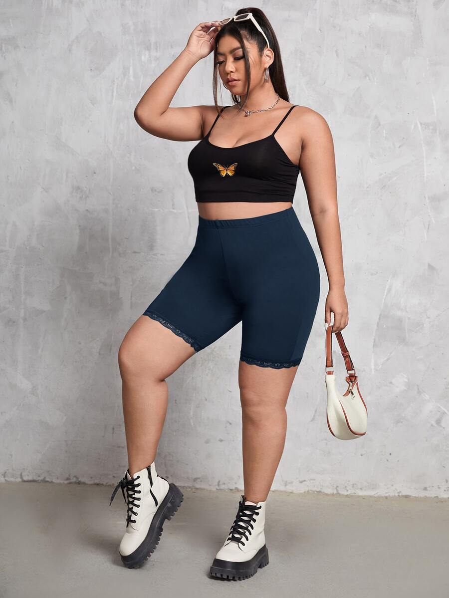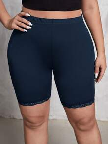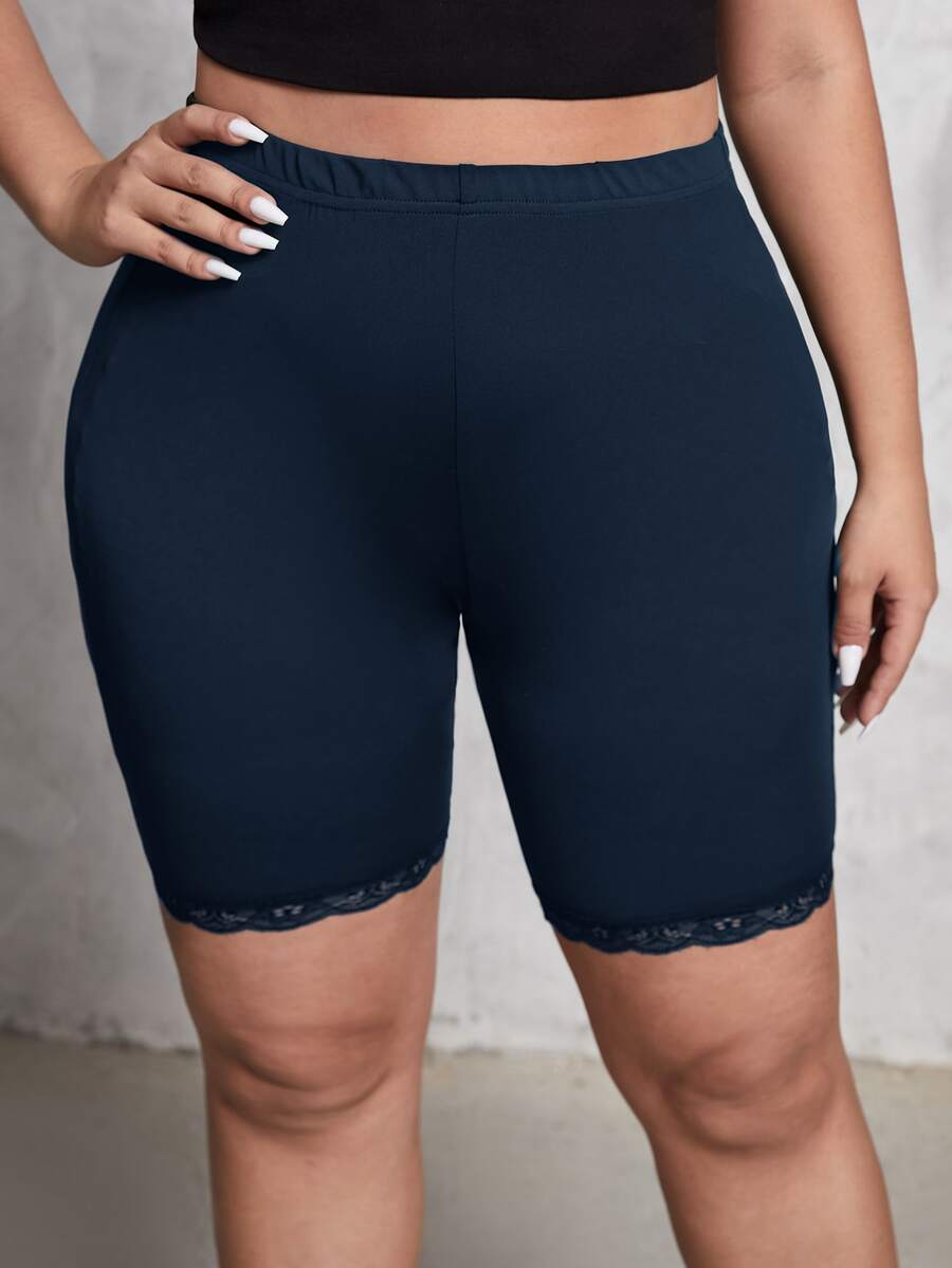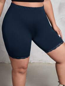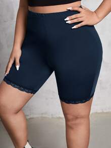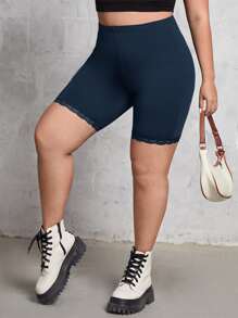 Plus Lace Trim Biker Shorts