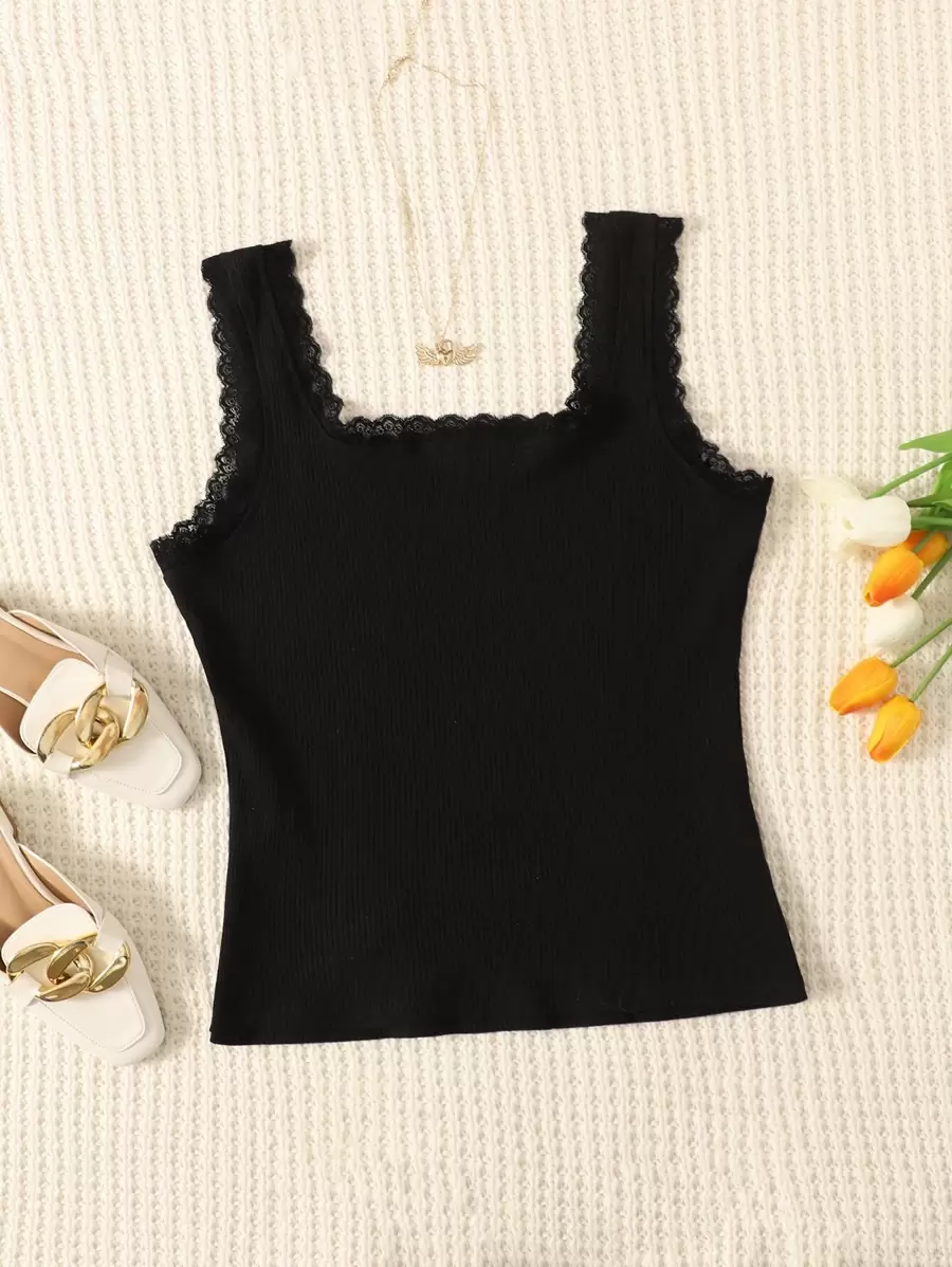 Plus Lace Trim Tank Top