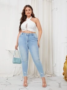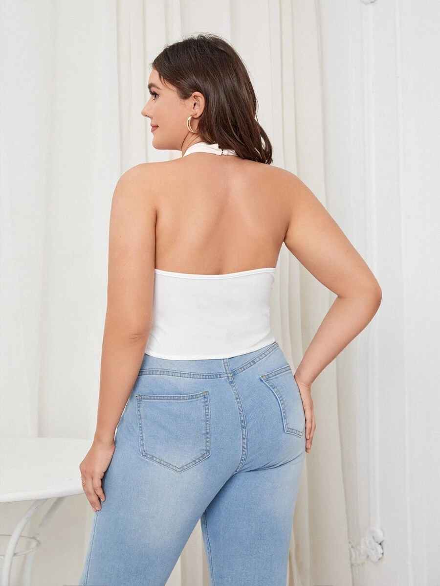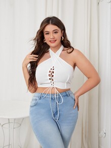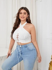 Plus Lace Up Criss Cross Halter Top