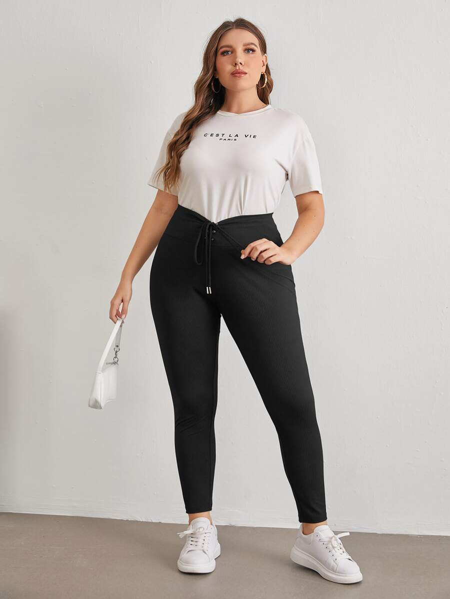 Plus Lace Up Front Leggings