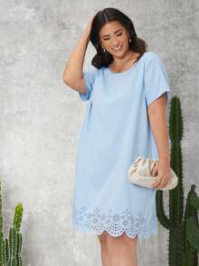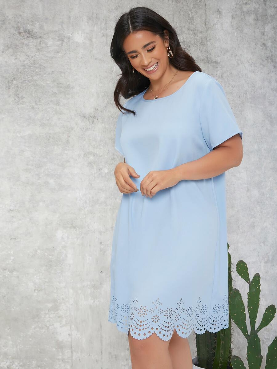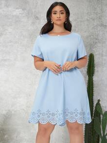 Plus Laser Cut Solid Dress